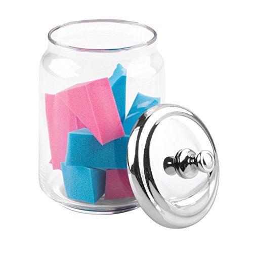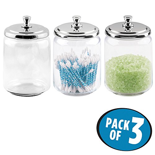 STORAGE MADE STYLISH: This pack of three apothecary canisters stores Q tips, cotton swabs, cotton balls, cotton rounds, makeup sponges, bath salts and more in stylish and decorative accent containers
