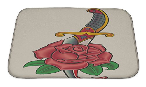 Gear New No Slip Microfiber Memory Foam Old School Tattoo Dagger Through Rose Bath Rug Mat, 24" X 17"