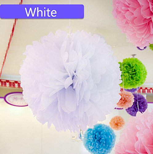 Magik 10pc Tissue Paper Pom Poms Flower Balls Wedding Decoration Party (14'', White)