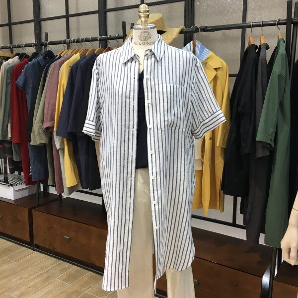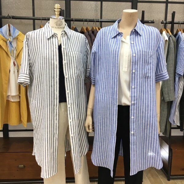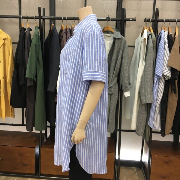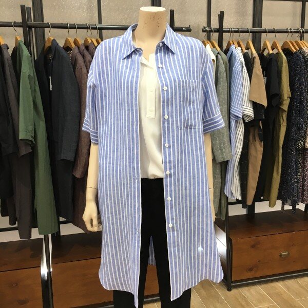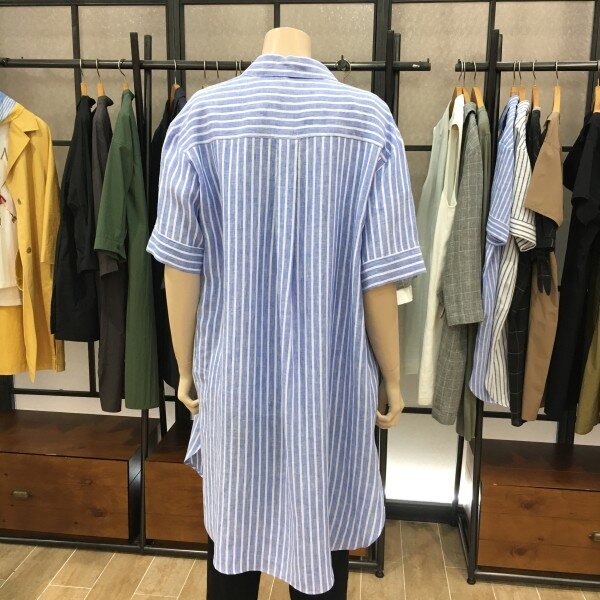 다양하게 연출하기 좋은 반팔 롱셔츠블라우스예요. 스트라이프 셔츠 아이템은 연령대, 계절 상관없이 자주 손이 가는 제품으로 단독으로나 레이어드로 활용하기 좋아 활용도면에서 기특한 아이템입니다. 핏과 컬러감 소재 어느 하나 빠지지 않고 완벽한 롱셔츠! 루즈한 핏감으로 얇고 길어 보이는 효과를 주는 제품이랍니다. 린넨 100% 소재로 제작되어 반바지 하나 입으시고 원피스처럼 단독으로 입어주어도 거슬 거리는 느낌 없이 착용되며, 자연스럽게 흘러내리는 어깨라인으로 여리여리해 보이는 실루엣을 만들어주어 여성스러움이 물씬 풍겨요. 나시나 짧은 이너입으시고 겉에 아우터로 입어 이지한 스타일링 또한 가능하며, 시즌에 꼭 맞는 멋스러운 룩으로 완성해주는 멋진 제품입니다. 총장길이는 55사이즈 기준으로 97cm입니다.