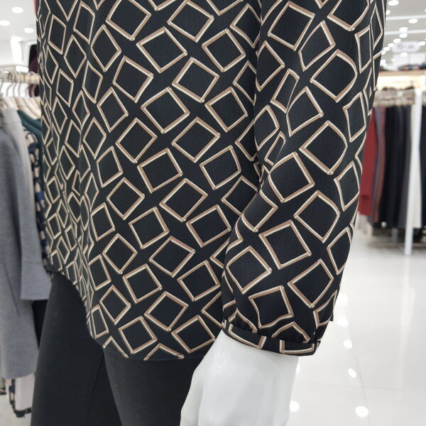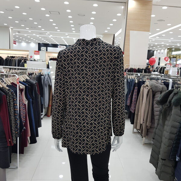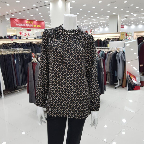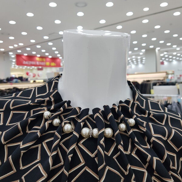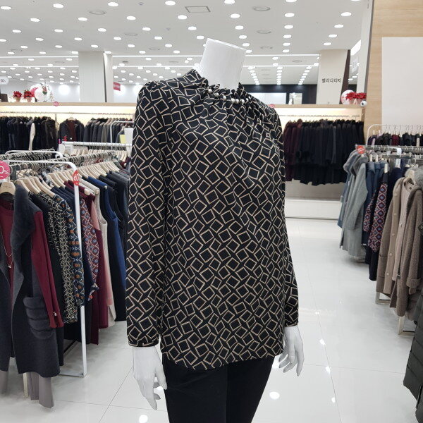 넥크라인의 진주 장식이 포인트인 정장 블라우스입니다. 폴리에스터 소재로 착용감이 좋은 상품입니다.