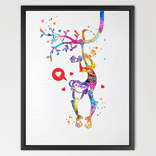 Dignovel Studios 11X14 Monkey watercolor print kids art home décor nursery décor wall art print children's room décor wall hanging new baby gift N125