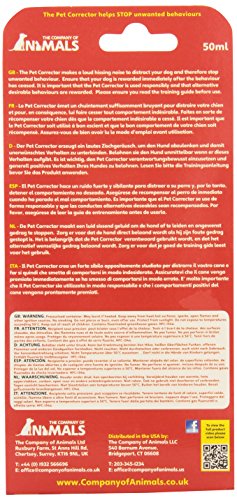 The Company of Animals Pet Corrector emits a hiss of air to interrupt undesirable behaviors in dog such as jumping up or stealing. Our domesticated pets have an instinctive sensitivity to this sound.