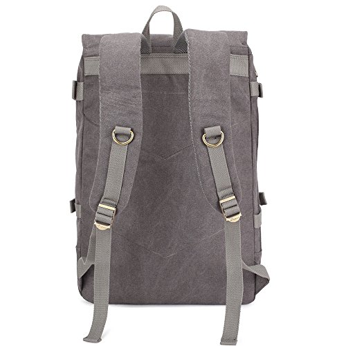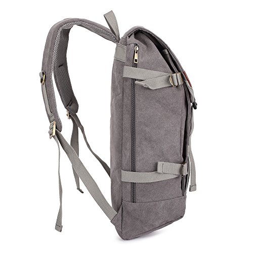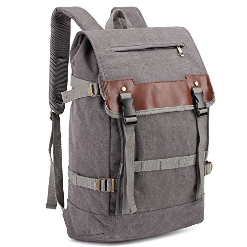 Title : BLUBOON Men Large Canvas Leather Backpack Vintage Rucksacks Camping Hiking Travel Bag Fit 15.6" Laptops (Grey)