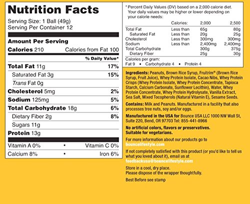 -. Title : Bounce Natural Energy Ball, Gluten Free, Peanut Cacao Energy Ball, 1.73 OZ Per Ball, 12 Balls Per Box