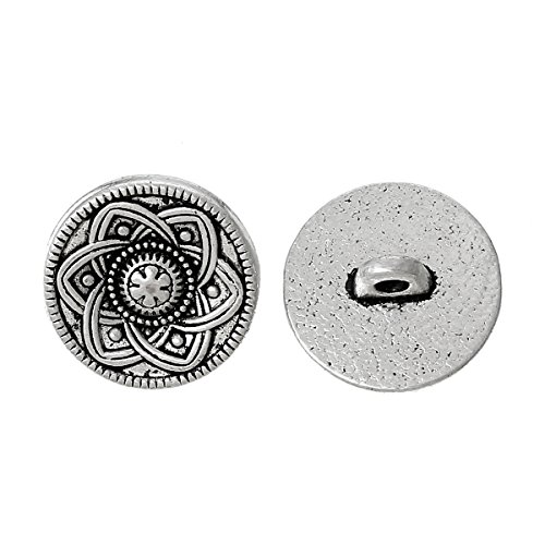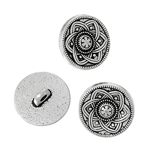 PEPPERLONELY Brand 10PC Antique Silver Metal Shank Button Round Single Hole Flower Pattern 15mm