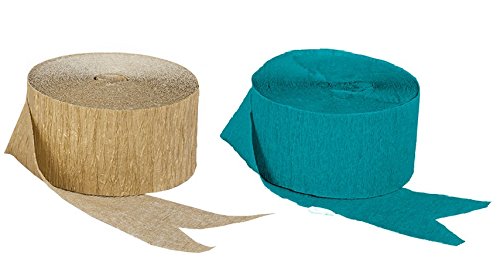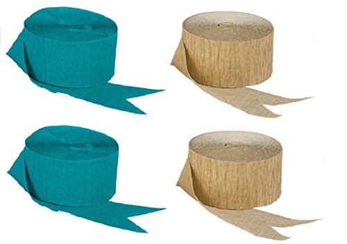Dark Metallic Gold and Teal Blue-Green Crepe Paper Streamers (2 Rolls Each Color) MADE IN USA!
