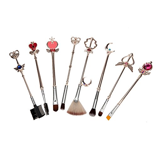 8/pcS Sailor moon jewelry Make Up Brush set Pincel maquiagem Golden Metal Moon Crystal Women (Rose Gold)