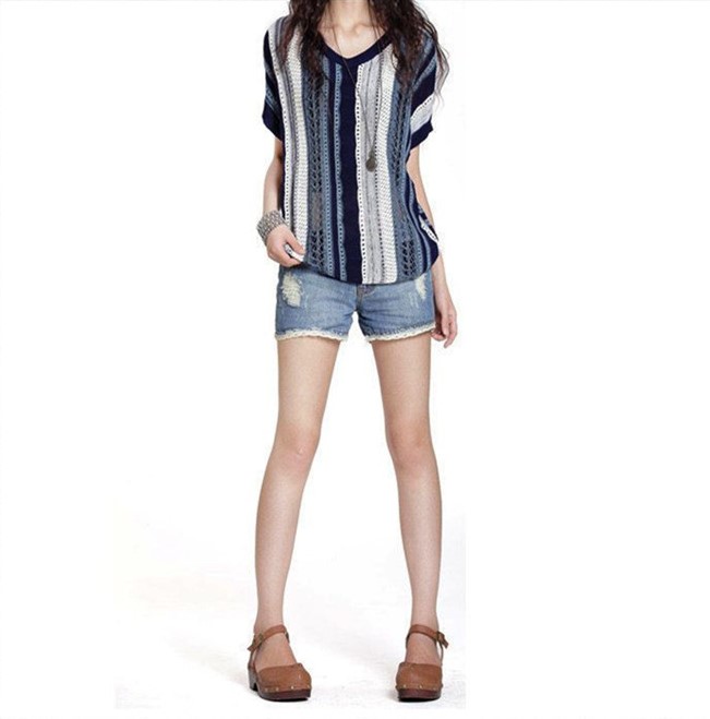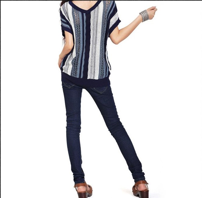 ストライプとボーダーの2面になっており、どちらを前にしてもOKな2wayで楽しめるサマーニット。