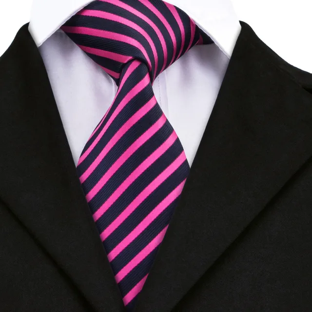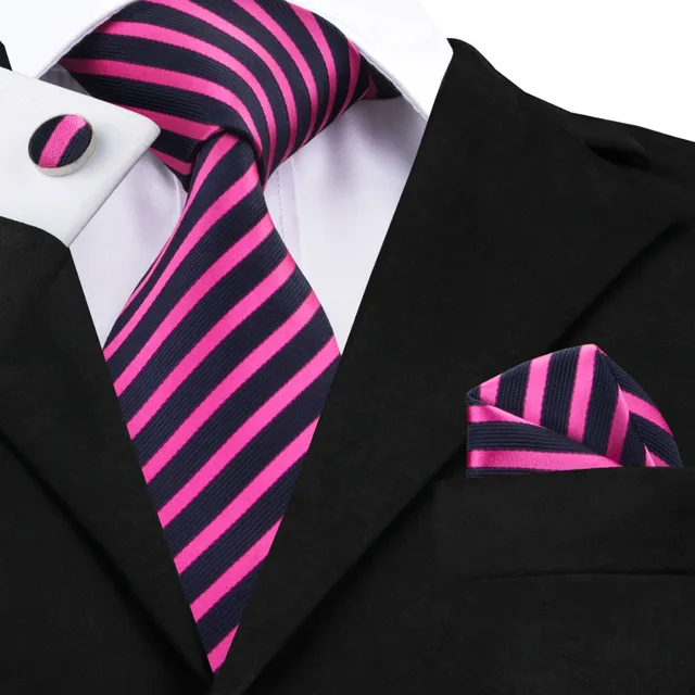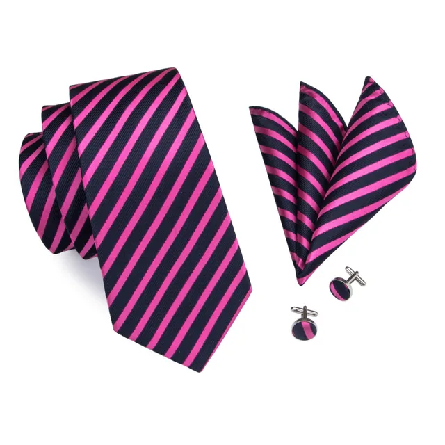 상품 내용 SN-1403 스트라이프 넥타이 남성 정장 핑크 블루 실크 목 넥타이 포켓 스퀘어 커프스 2016 가을 새로운 디자인 Corbatas