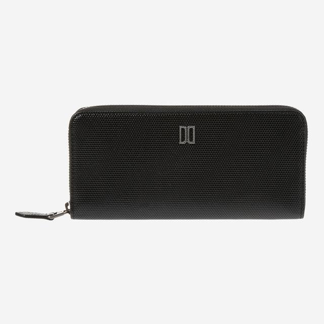 은은한 광택감의 육각 엠보 가죽 소재 바탕에 스와로브스키 DD 로고 장식으로 화려한 느낌을 주는 ALICE 장지갑입니다.