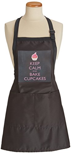 3dRose apr_159620_4 Keep Calm and Bake Cupcakes Baking Baker Dessert Pastry Chef Full Length Apron with Pockets, 22 by 30-Inch, Black