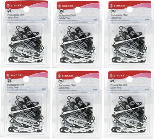 Singer Asst Black and White Professional Style Safety Pins, Multisize, 25-Count (Pack of 6)