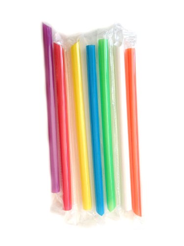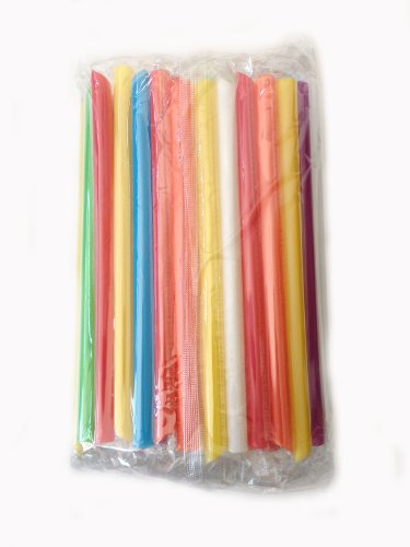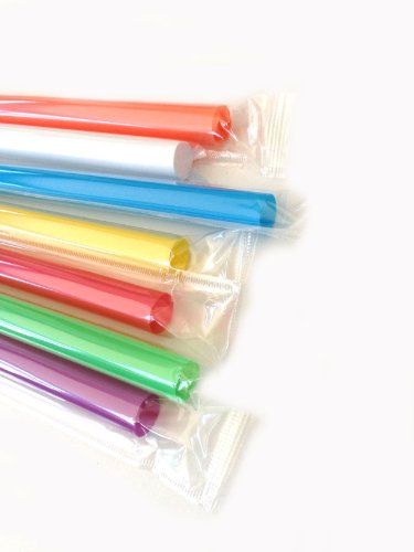 -. Title : 50 Individually Wrapped Assorted Colors Long & Wide Drinking Straws for Bubble Tea Smoothies and More