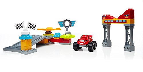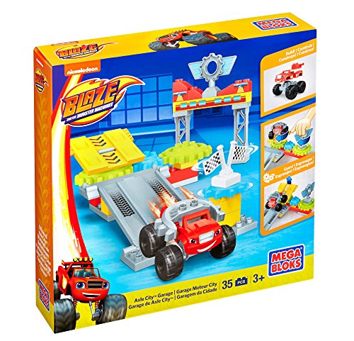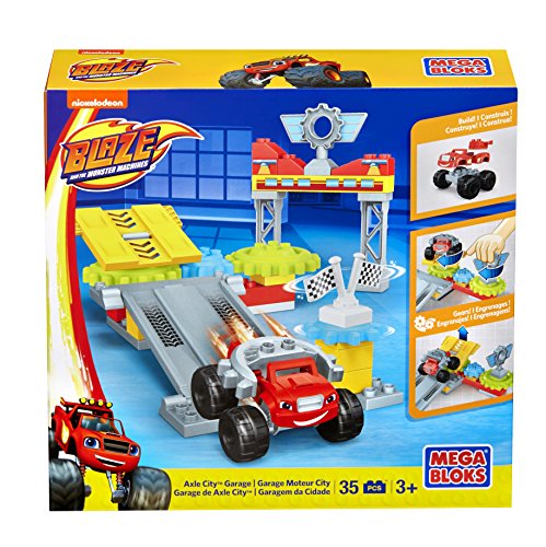 -. Feature : Buildable Axle City Garage with working gears, rotating platform, ramp, archway, and racing flag / Easy-to-build Blaze Monster Machine with gear attachment / Turn the platform, launch Blaze down the ramp / Spin the flag to learn about gears / Combine with other Mega Bloks Blaze playsets and build your Axle City