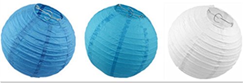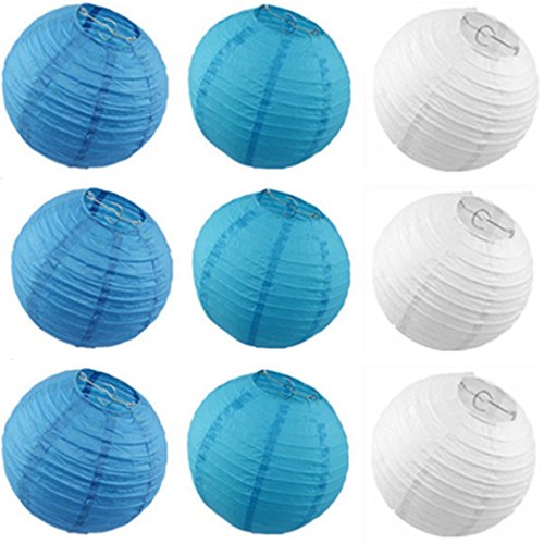 Derker 9pcs Sky Blue+Light Blue+White Chinese/Japanese Paper Lanterns/lamps Assortment, Paper Lantern Value Pack Party Accessory(8 Inch) (Blue)