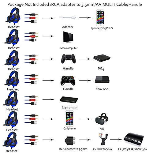 UNIVERSAL COMPATIBILITY:headset for devices with 3.5mm earphone connector is suitable :headset+Mac Laptop/iPad/tablet Computer/PC=Stereo sound of music,Ear Headphones+ Handle+PS4/nintendo switch/xbox one/1=hifi gaming music,earphone+RCA adapter to 3.5mm+ AV MULTI Cable+PS2/PS3/PSP/XBOX 360=free gaming music,headset+iPhone 6/6 Plus/Samsung S4/S5/LG/Xiaomi/sony/Mobile/cell Phone=music portable,headset+mobile phone+vr=virtual reality music player,headset+adapter+iphone7/7S/7PLUS/X=prime music