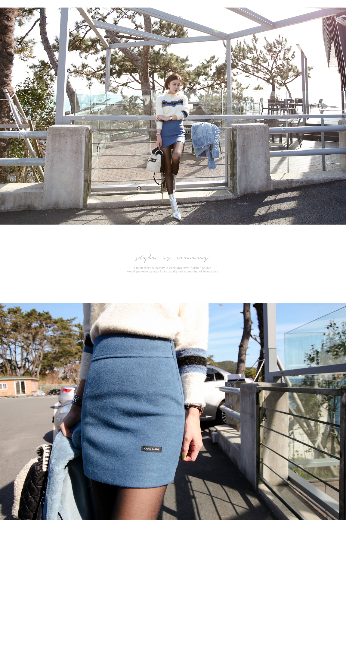 밑단과 소매단에 시보리처리로 안정감있게 잡아주며 전체적인 라인을 살려줍니다