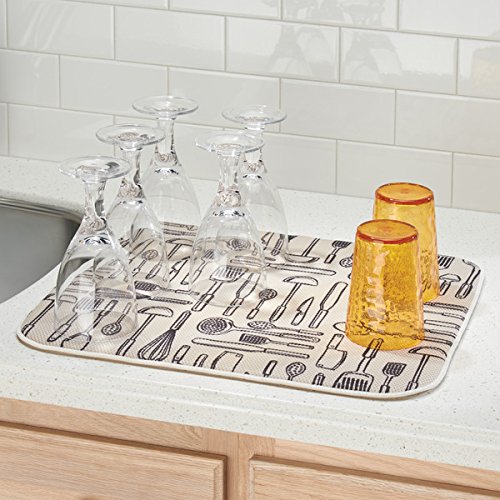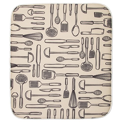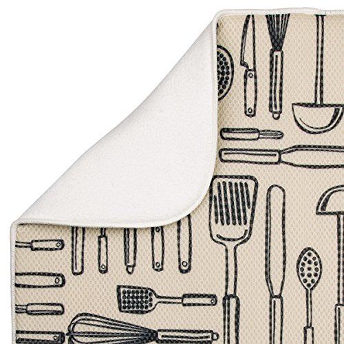 Set of 2 includes: 1 extra large dish drying mat, 1 large dish drying mat, both with a fun kitchen-themed pattern