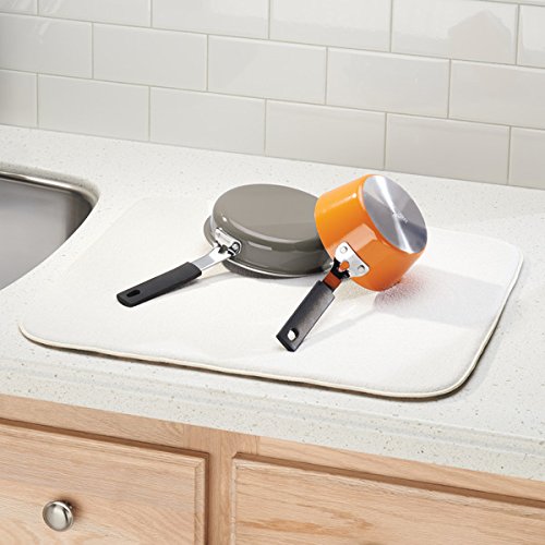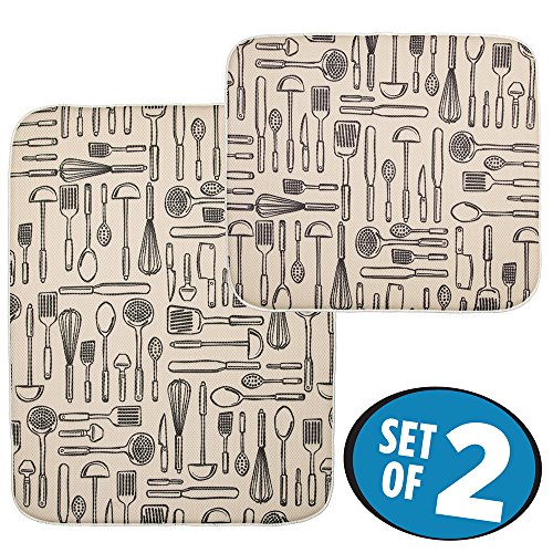 mDesign Absorbent Kitchen Countertop Dish Drying Mat - Set of 2, Wheat/Ivory