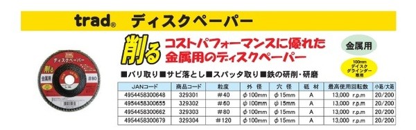 【商品名】(業務用100個セット) TRAD 金属用ディスクペーパー 【#80】 100mmディスクグラインダー専用 アランダム 〔DIY用品/大工道具〕
