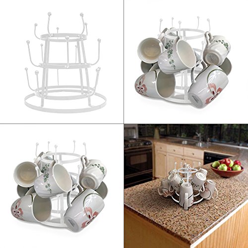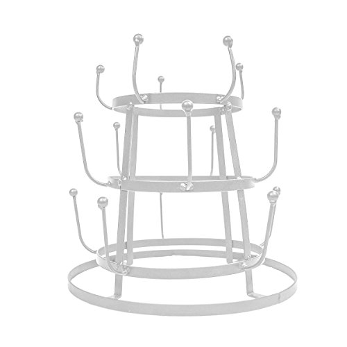 This white mug holder is made out of high quality durable metal with a smooth bronze finish touch, the 3 tiered rack holds 15 coffee or tea mugs bottles and Glasses