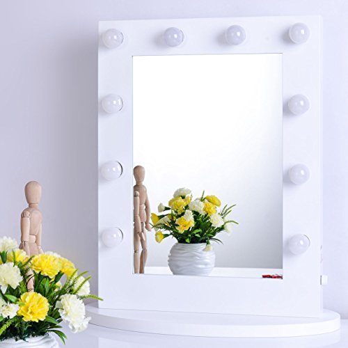 Chende Vanity Mirror with Light Hollywood Makeup Mirror Wall Mounted Lighted Mirror + Free LED Bulbs (6550, White)