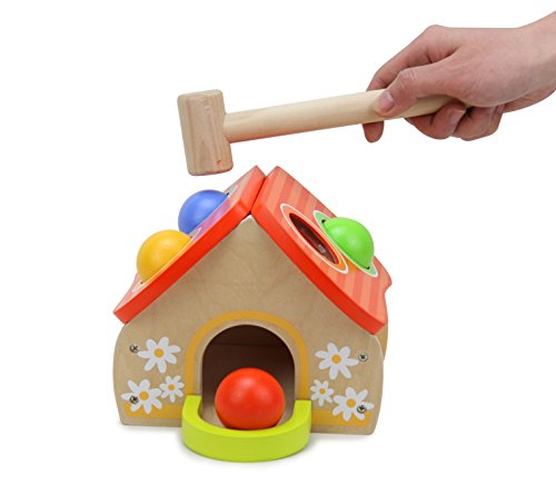 This product is a wonderful toy will help baby exercise their hand-eye coordination while pounding on colorful balls with an included hammer. Engage baby's sense of touch and hearing skills during play. Appropriate for babies 3 months plus.Eco-friendly and nontoxic material made.