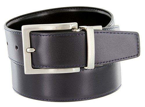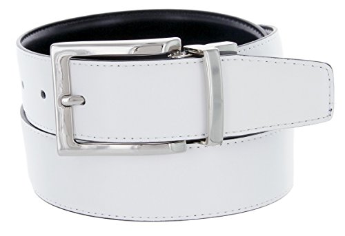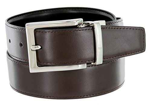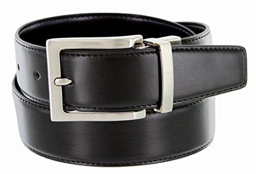 Product Description Soft Reversible Glove leather with Classic Black on one side and a sleek color on the other. Gently pull and twist the buckle to switch between the two colors. 1.25"(32mm) wide and buckle is in Nickel-polished finish. Sizing: Measure around where you wear the belt, with your pants on, and order the closest size. 0