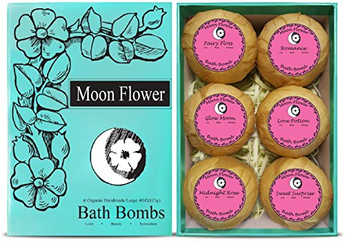Moon Flower Six Organic Handmade Large and Lush Bath Bomb Gift Set