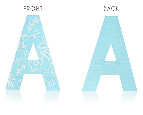 WOODEN LETTER SET: Contains a total of 104 pieces, with 4 pieces of each letter in the alphabet in a blue floral pattern. Comes with a storage tray for easy access.