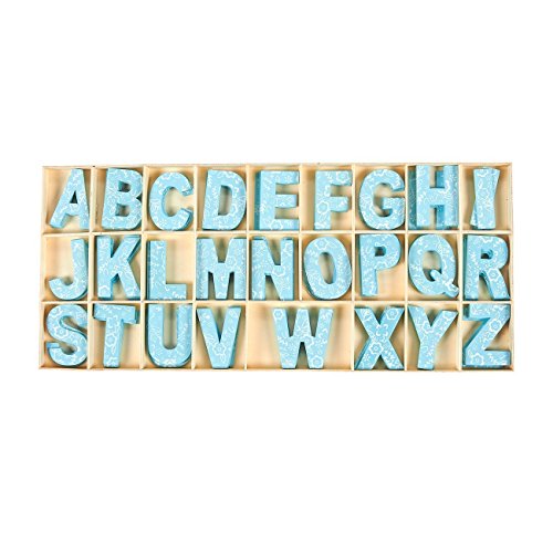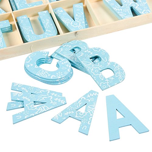 104 Piece Set Wooden Letters - Wooden Craft Letters with Storage Tray - Wooden Alphabet Letters, Blue