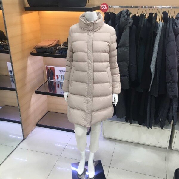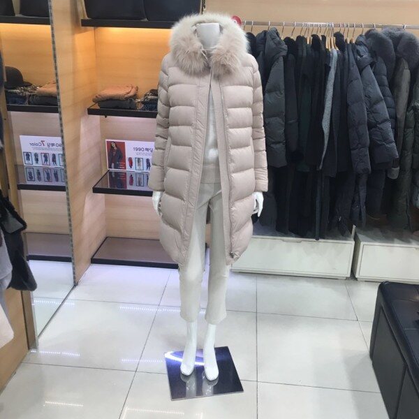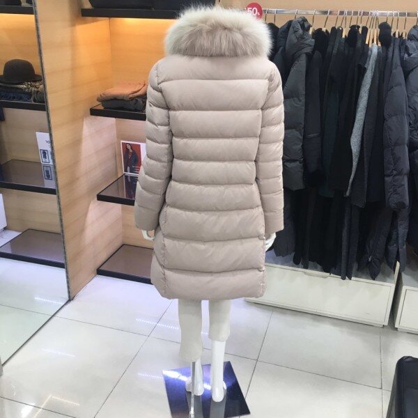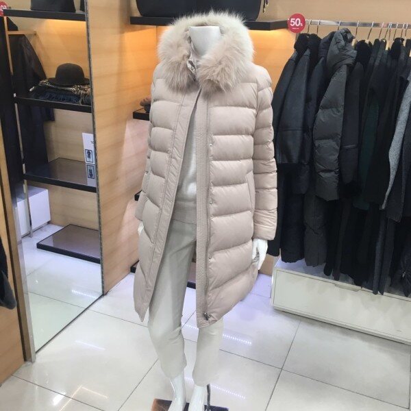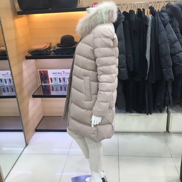 쉬즈미스 베이직한 디자인의 내츄럴한 분위기를 연출하는 하이넥의 폭스카라 분리가능한 덕다운 패딩점퍼점퍼예요