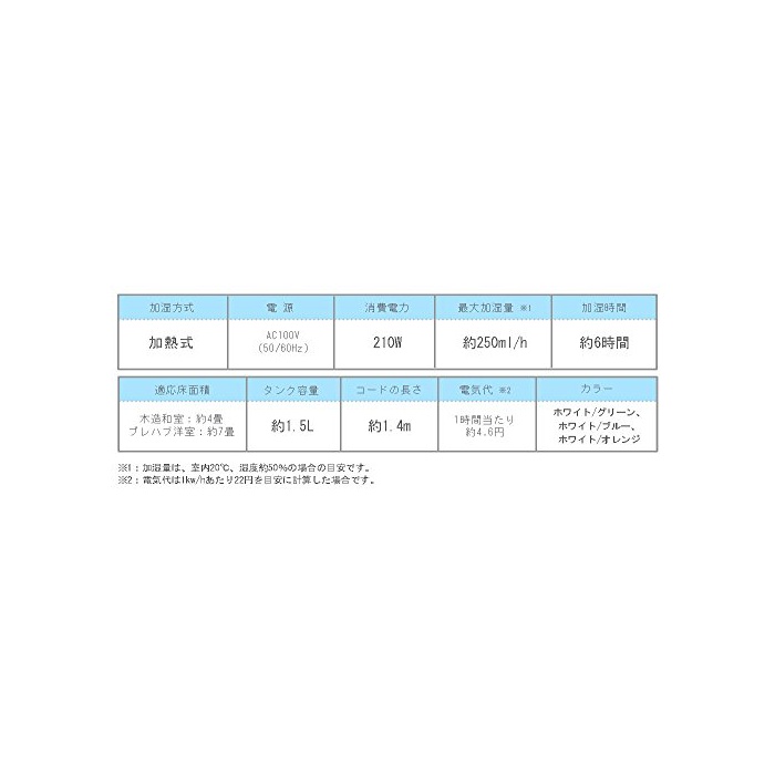 최대가 습분량:약250ml/h(※가습분량은,실내20℃고, 습도 약50%의 경우의 기준입니다.)