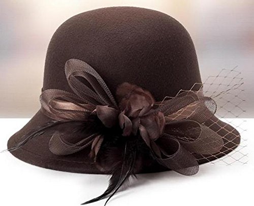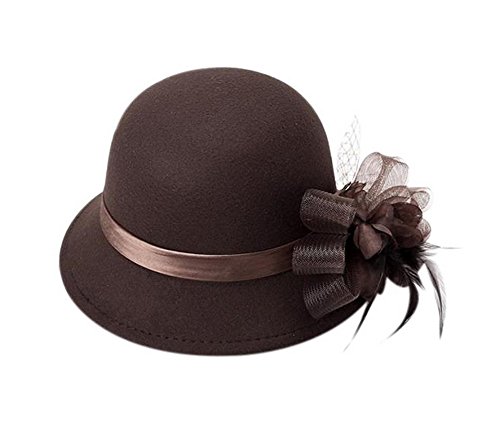 (Gentle Meow)/Accessories/Hats/DIRECT FROM USA/Gentle Meow Women Retro Wool Felt Bowler Hat Wide Brim Basin Hat With Big Flower, Dark Brown