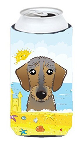 Caroline's Treasures BB2101TBC "Wirehaired Dachshund Summer Beach" Tall Boy Hugger Koozie, Multicolor