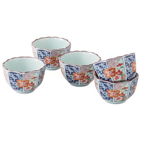 Saikai Pottery Somenishiki Ogihana angle Kozuke assortment Traiditional Japanese Bowls (5 bowls set) 14158 from Japan