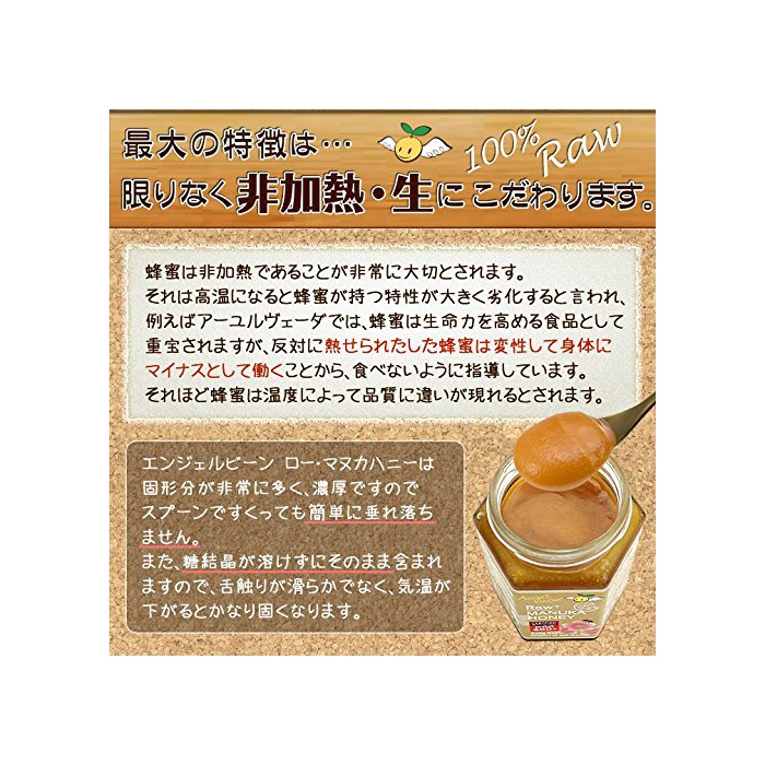 크림 가공을 행하고 있지 않으므로「딱딱하 #의 먹을 때의 느낌」와「자연스럽고 농후한 맛」 가 최대의 특징,독자적인 저온 제법 로 인해 벌꿀의 효소가 살고 있고, 《마누카》독특한 냄새가 적게 스위트한(풍미)맛이 자랑의 일품입니다.