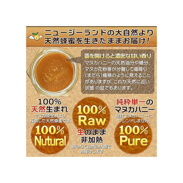 원본상품명: 天然 非加熱 生マヌカハニ ニュジランド産 MGO認 マヌカ蜂蜜(生はちみつ)