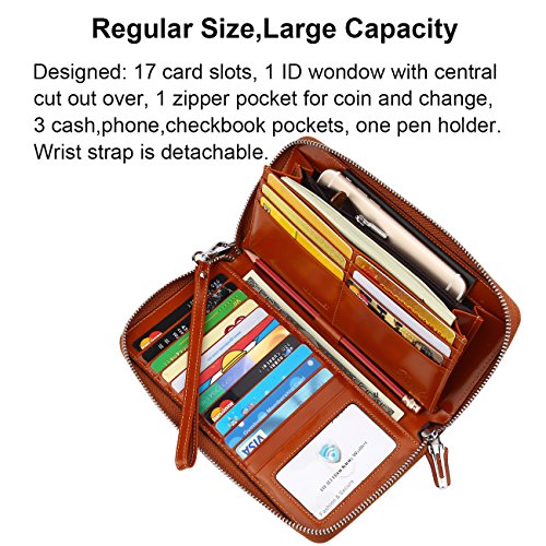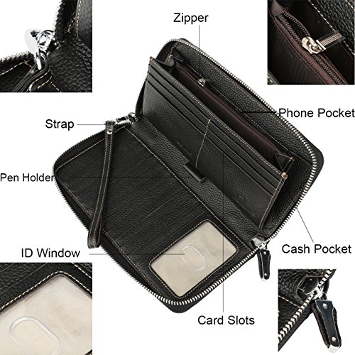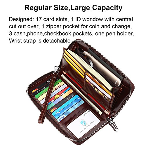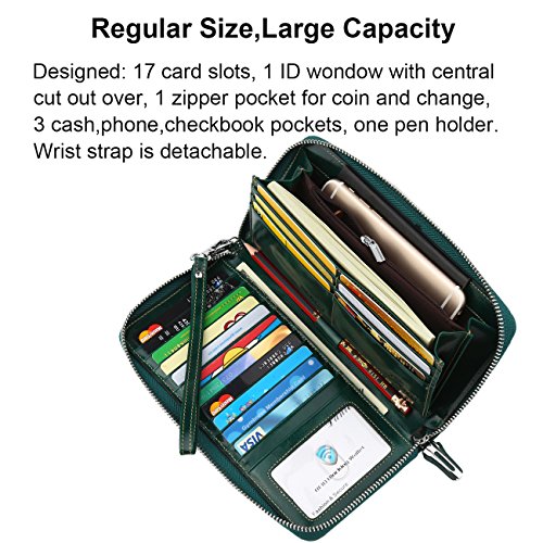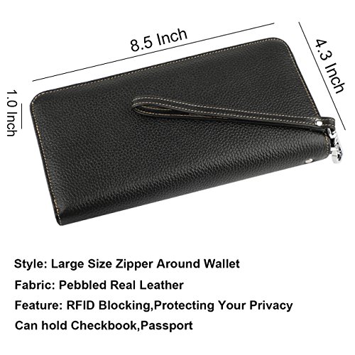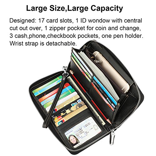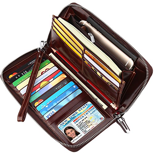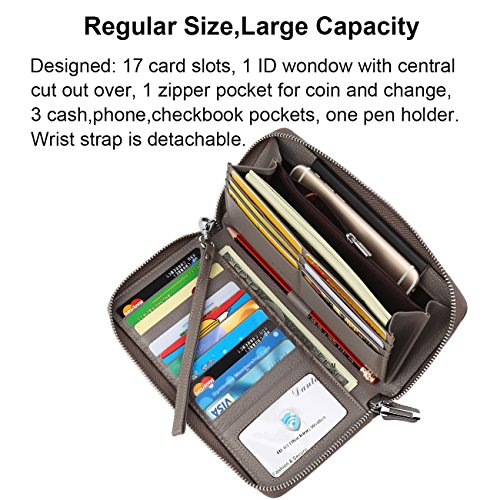 Binding : Apparel Product Description What is RFID? RFID (radio frequency identification) is a growing technology that uses radio waves to read and transfer information between devices. Personal cards that currently use this technology include credit cards, transit payment cards, and identification cards such as enhanced driver's licenses. Why use a RFID wallet? The information on cards with RFID is vulnerable to theft from nearby persons with RFID readers to scan and capture information on RFID cards without ever physically coming in contact (similar to scanning a barcode). RFID wallets protect cards from unknown scans with the unique protective layering crafted inside the wallet lining. Why choose a Dante wallet? Our wallets are not made with cheap bonded leather like most wallets in the market, but are crafted and sewn together using 100% premium cowhide nappa leather that will endure the wear and tear of everyday use for years to come. Our wallets are designed to protect without sacrificing in aesthetics. The roomy design includes 17 credit card slots, 1 clear slots for ID, 3 Large Cash/Checkbook/Phone pocket,1 zippered pocket for change and a pen loop. The RFID blocking layer has been tested to block signals ranging from 10MHz and above and does not make crinkling noises as with other RFID wallets in the market. Our wallets are wrapped and packaged in attractive gift boxes making it the perfect gift for any occasion and are covered by our product lifetime warranty after registration to ensure complete satisfaction with your purchase. Please note: This wallet shields RFID frequencies ranging from 10MHz to 3000MHz. It does not shield against older proxy cards that operate at low frequencies of 125 kHz. 0