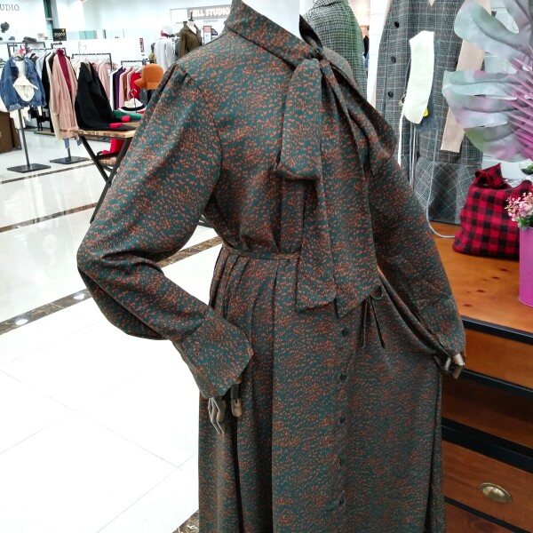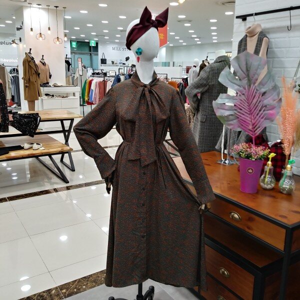 큼직한 넥리본포인트의 롱 원피스로 포켓이 있어 편하고 버튼오픈이라 편하면서허리끈으로 라인잡아주어 여리한핏의 원피스로 데일리하실수 있어요