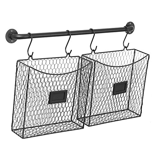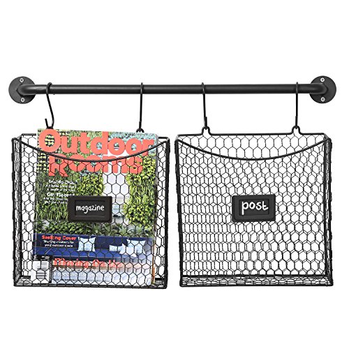 Studio : MyGift Publisher : MyGift Binding : Kitchen Product Description Organize any room with this multipurpose double basket wall mounted magazine rack. An industrial style metal pipe easily holds two chicken wire mesh baskets with four s-hooks. Each basket contains a rectangular erasable chalkboard label to easily categorize and organize its contents. A dark brown rustic finish creates an attractive addition to any decor. You can easily mount these baskets in your bathroom for holding magazines, hand towels or cosmetics. Keep it in your kitchen for holding recipes, spices or fresh produce. Display it in your office or a waiting room for reading material, file folders or documents. You could even store it in your bedroom for holding clothing accessories, jewelry or electronic storage. Anywhere you mount this multi-functional basket set, its bound to create storage, organization and stylish decor. **Official MyGift® product** Approximate Dimensions (in inches): Overall - 15.5 H X 25.5 W X 3.75 D. Each Basket - H X W X D. 0 |