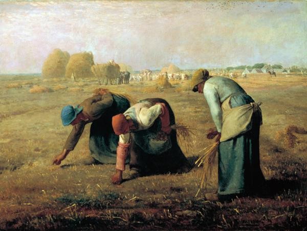 はじめはサロン展に入選しやすい絵を描きますが、1848年2月革命下の無審査のサロンに「小麦をふるう人」を出品します。1849年にバルビゾンの村に移ってからは専ら農民画を描くようになり、故郷の風景の中にいる農民を描いた「種をまく人」は1851年にサロンに出品しました。1960年代にミレーは写真と日本の版画に興味を持ちます。大地と農民の生活を描くことに集中してきたミレーは、この頃から風景の方に専心していきます。