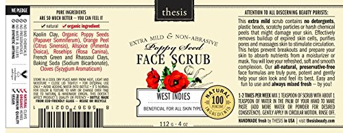 This fabulous deep cleansing natural facial scrub contains only 100% certified organic herbs, flowers and premium natural clays. No preservatives, synthetics, fragrances, plastic beads are in there. Gentle and mild, yet very effective, this all natural and organic facial exfoliant removes impurities, dirt, contaminants, excess oil and dead skin cells, revealing new, glowing young skin that smells of flowers and delicate spices. If you are using commercial facial scrubs and wondering why they didn't put enough of those scrubbing pellets - this organic facial scrub will pleasantly surprise you. It's got just the right amount of the cleansing all natural yummy poppy seeds (not some cheap plastic pellets!) so you will see how effectively it cleans and massages your skin in a single motion. Great for using on all skin types, particularly wonderful for problem, sensitive, mature and dry skin which require gentle, delicate care. Our natural face scrub is easy & fun to use and you can customize the consistency by adding the amount of liquid that is just right for you! On top of that you can have a great, fresh, all natural scrub every time instead of a heavily preserved regular scrub. Enjoy!Feature