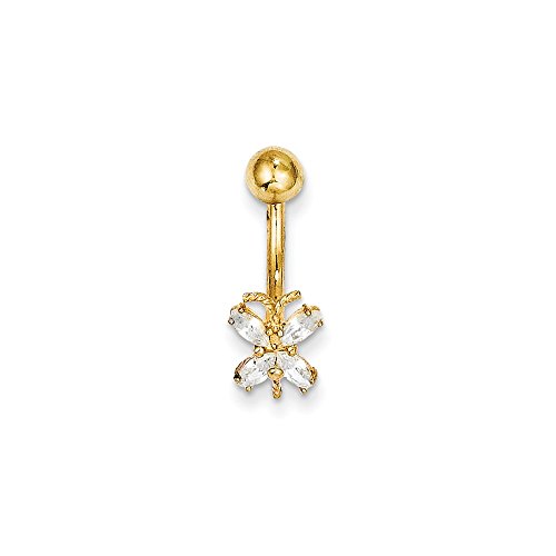Product DescriptionSolid 10k Yellow Gold with CZ Cubic Zirconia Butterfly Belly Dangle (7mm x 21mm)0