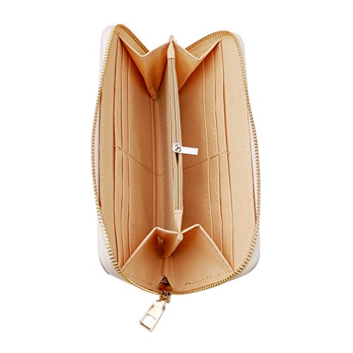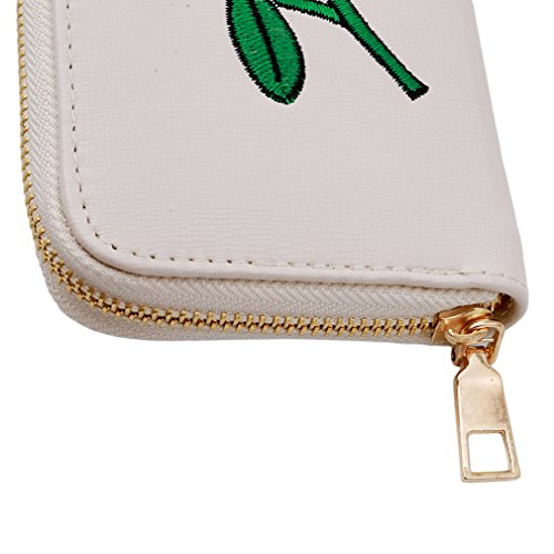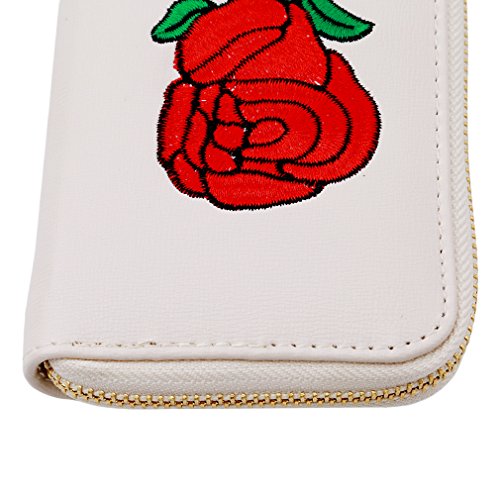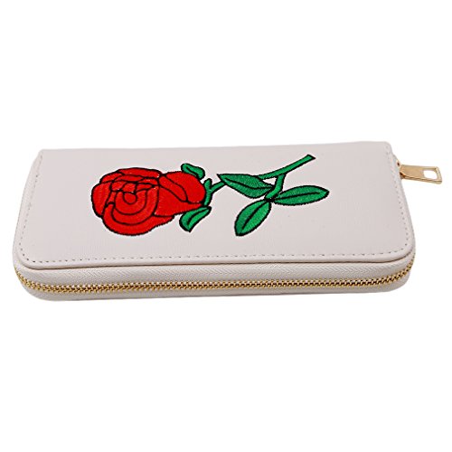 SONG LIN Women Girls Rose Embroidered Card Wallet Handbag Long Purse Cluthbag (Beige)