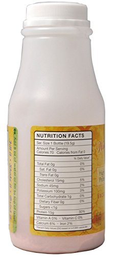 -. Feature : High Protein - 15 grams Per Bottle / Low Calorie - 70 Calories Per Bottle / Low Carbohydrate - 1 grams Per Bottle / Fat Free / Easily Mixes with Water
