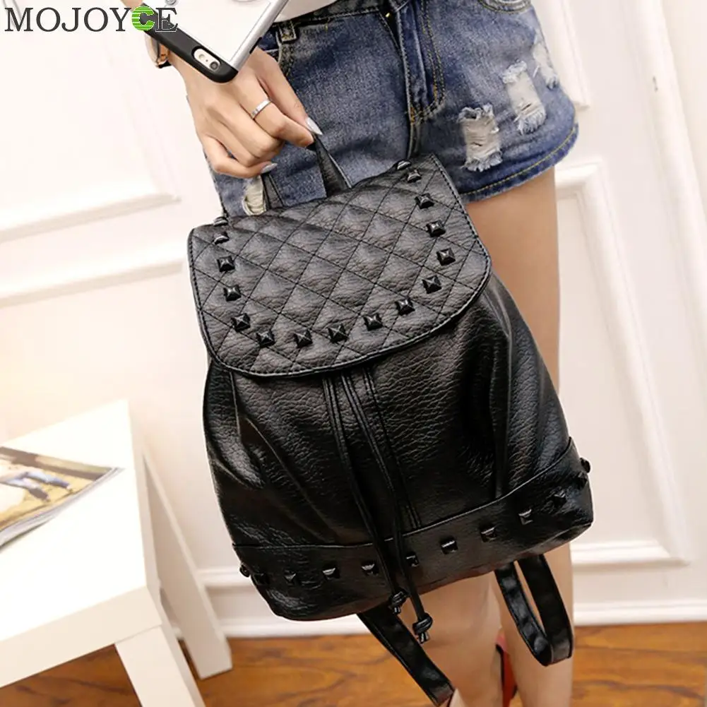 2017 Winter Washed PU Leather Backpack Fashion Female Mini Rivet Backpack Teenage Girls Travel Mochila Escolar Women Backpacks