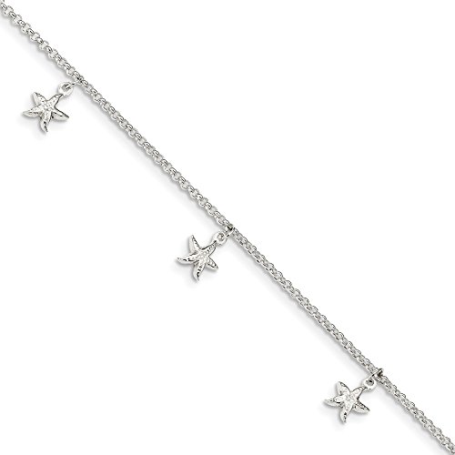 Solid 925 Sterling Silver Starfish Dangles 9 inch with 1 inch ext. Anklet 9" - with Secure Lobster Lock Clasp (1.5mm)