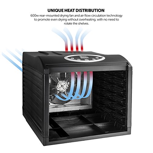 DIGITAL THERMOSTAT & TIMER help you choose your desire temperature and time. Up to 19.5 hours dry time. Choose drying temperatures from 95º F to 158º F. Countdown timer.